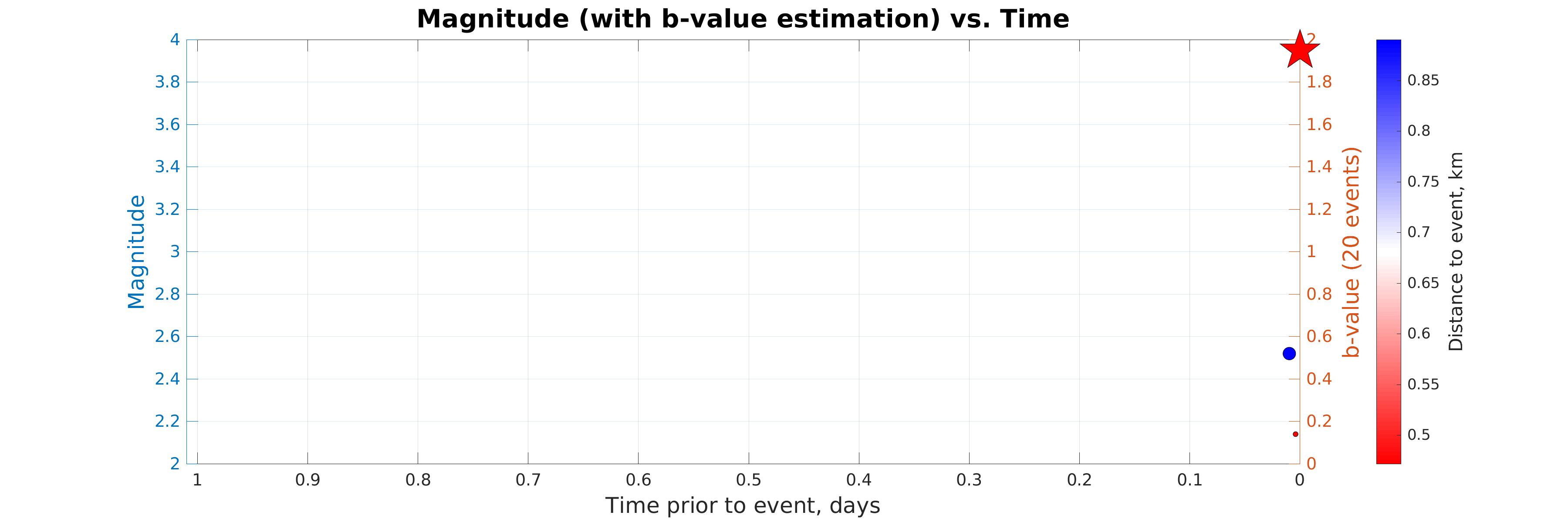 Figure 2. Magnitude (with b-value estimation) vs. Time