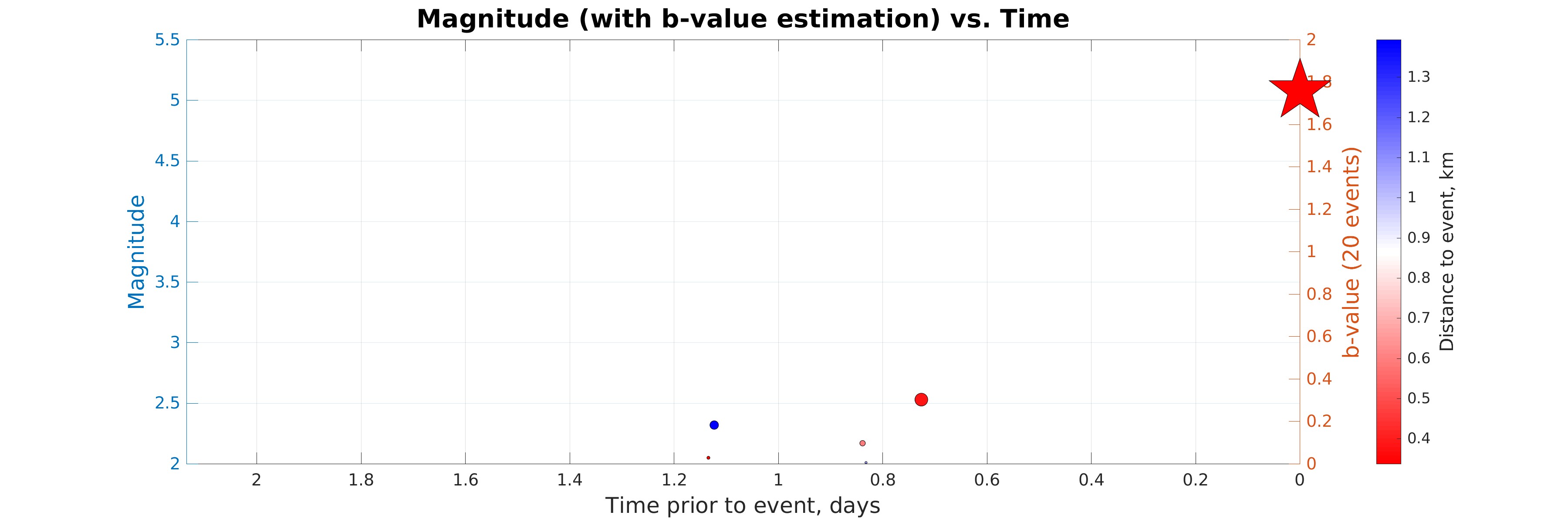 Figure 2. Magnitude (with b-value estimation) vs. Time