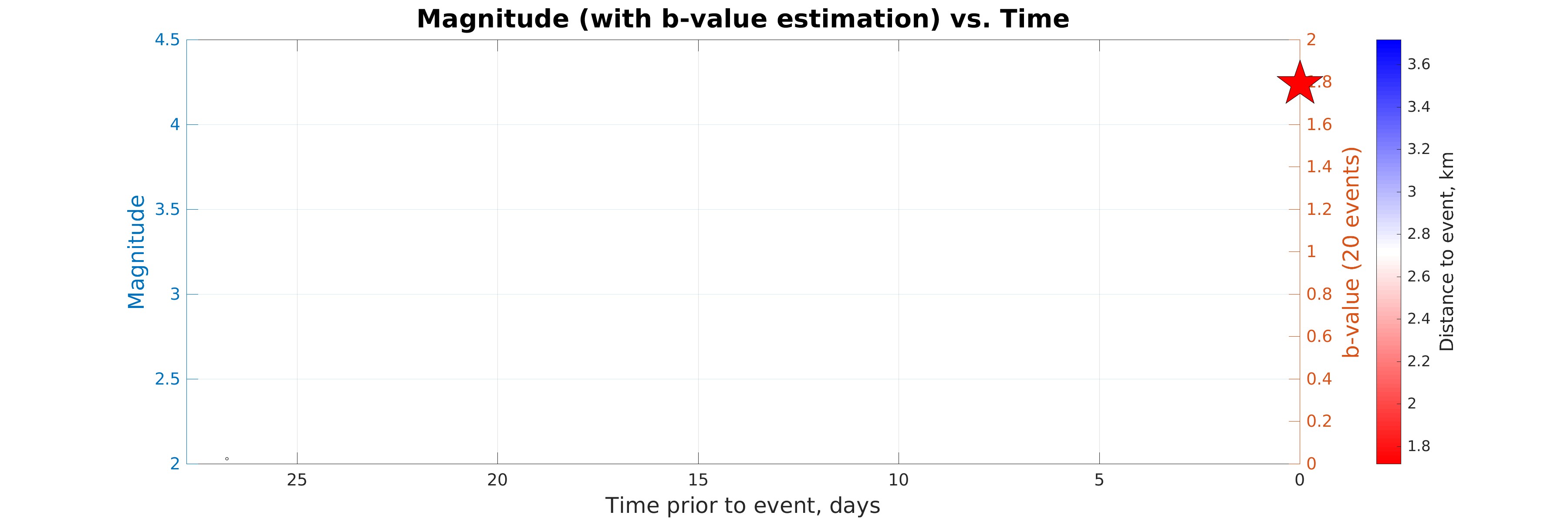Figure 2. Magnitude (with b-value estimation) vs. Time