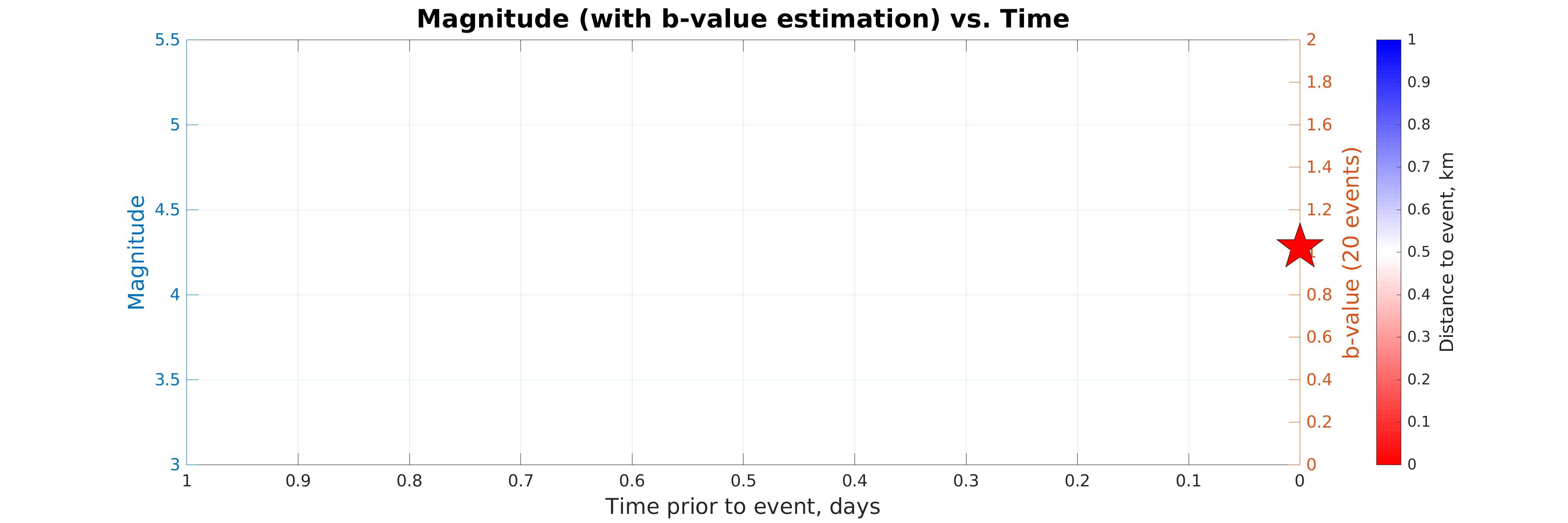 Figure 2. Magnitude (with b-value estimation) vs. Time