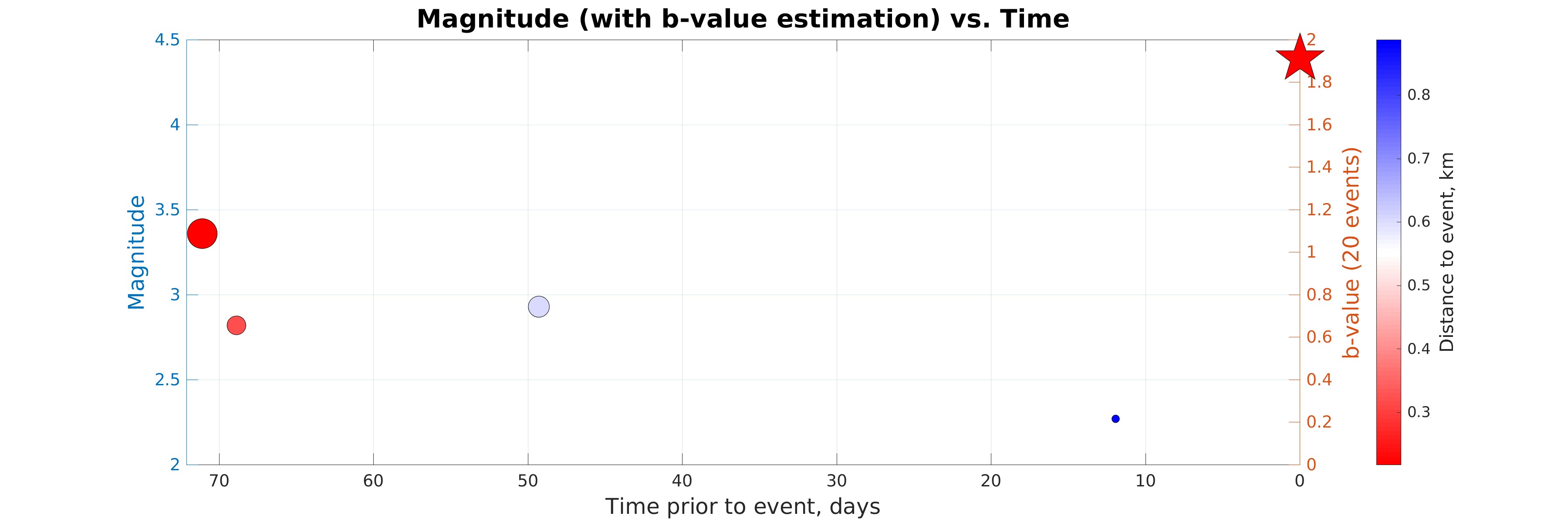 Figure 2. Magnitude (with b-value estimation) vs. Time