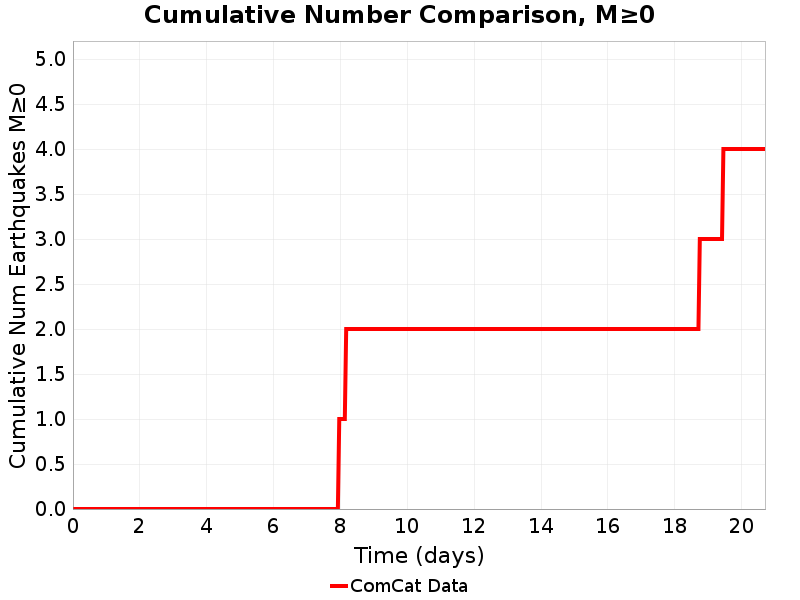This plot shows the cumulative number of M≥0 aftershocks as a function of time since the mainshock.