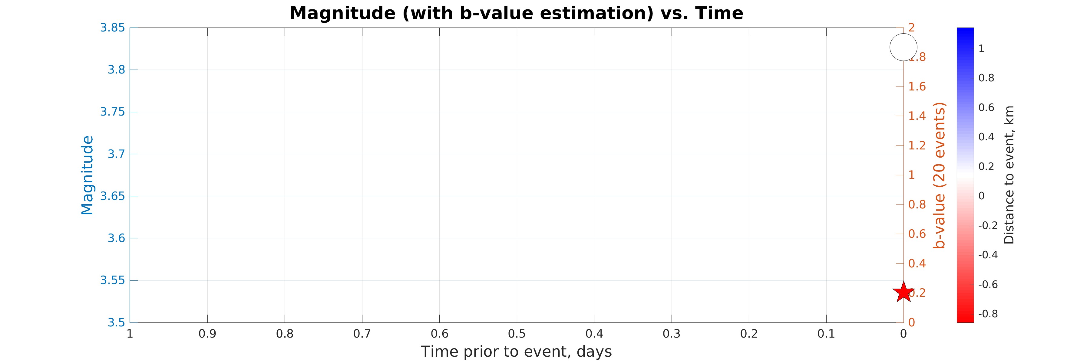 Figure 2. Magnitude (with b-value estimation) vs. Time