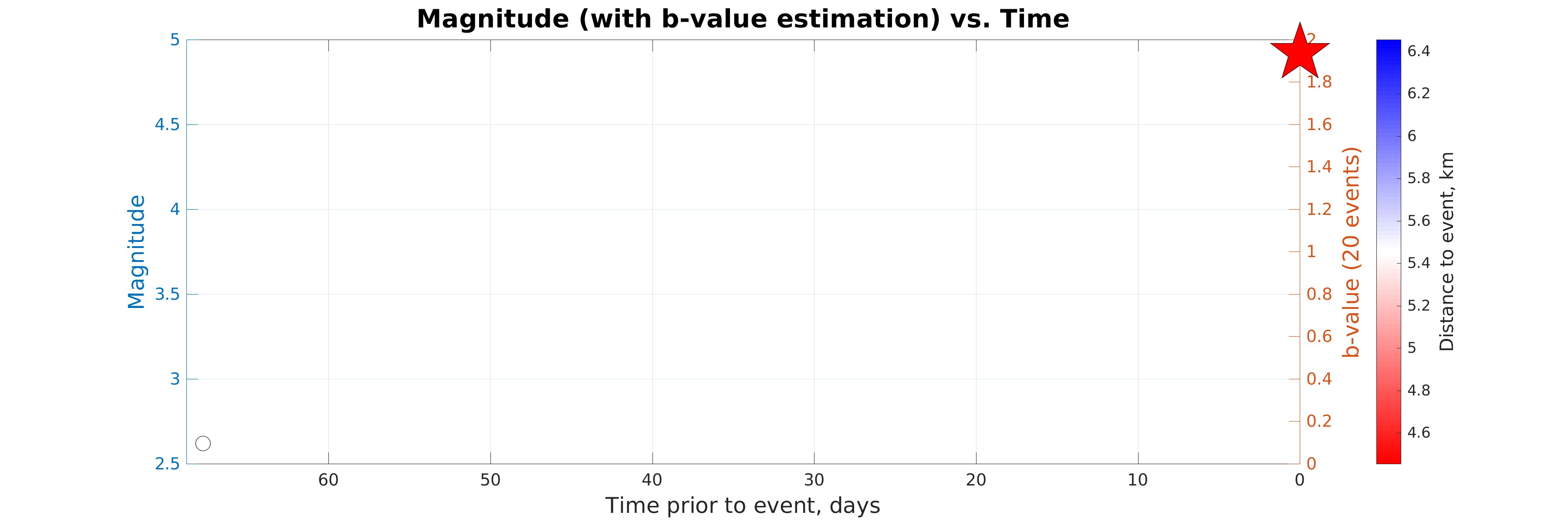 Figure 2. Magnitude (with b-value estimation) vs. Time