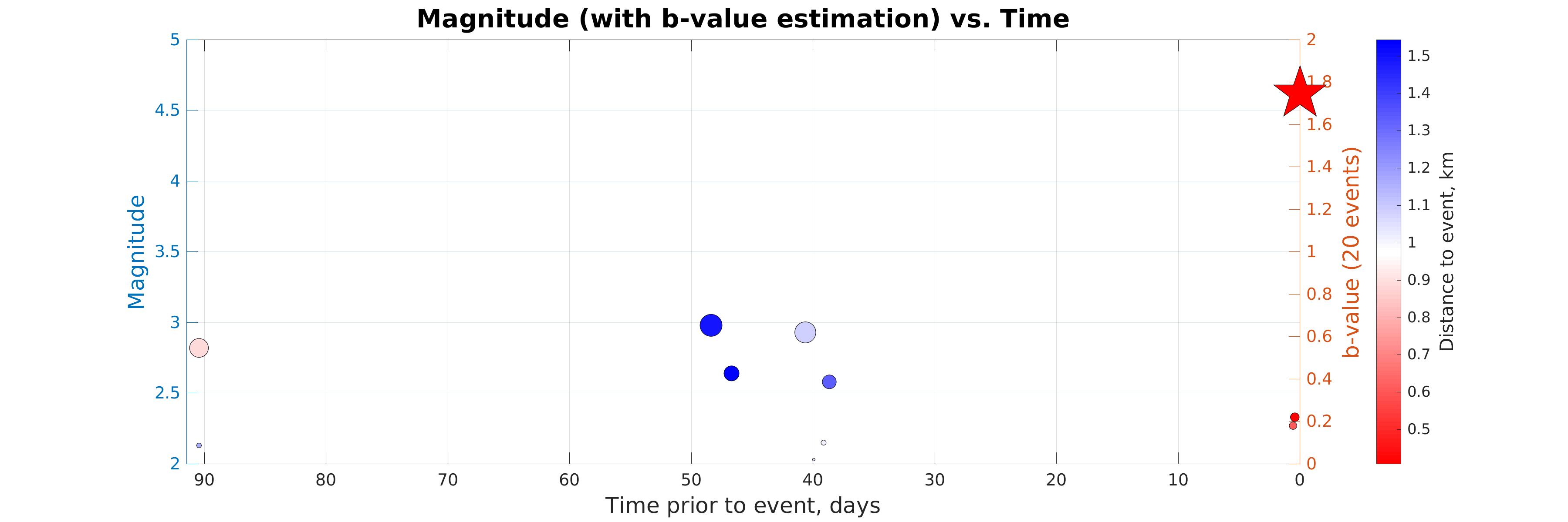 Figure 2. Magnitude (with b-value estimation) vs. Time