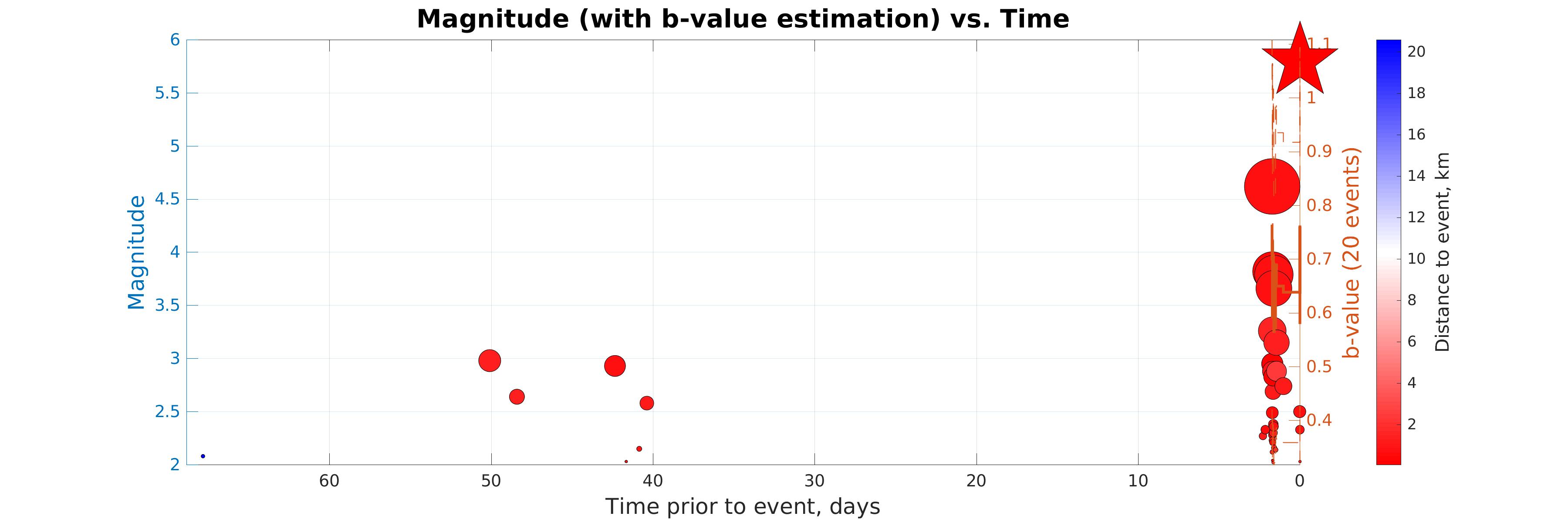 Figure 2. Magnitude (with b-value estimation) vs. Time
