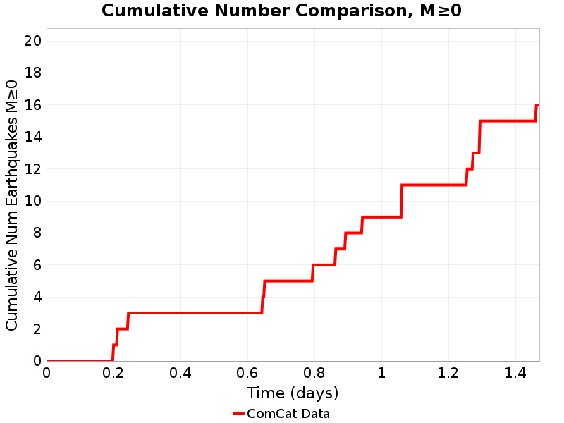 This plot shows the cumulative number of M≥0 aftershocks as a function of time since the mainshock.