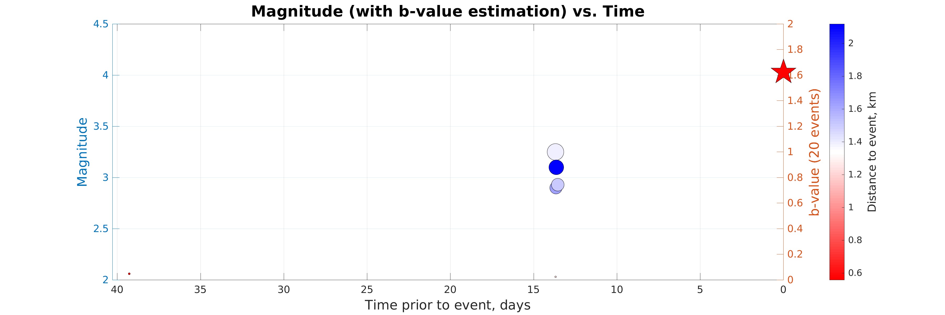 Figure 2. Magnitude (with b-value estimation) vs. Time