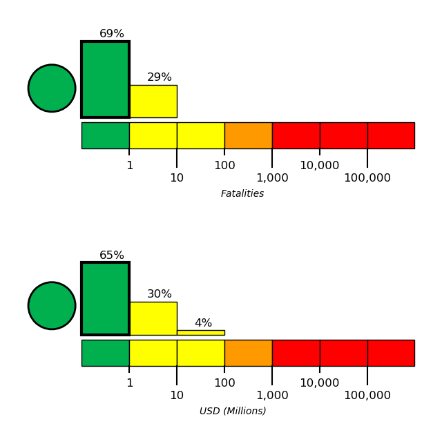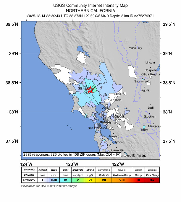 Probabilities are inherantly time-dependent. Those stated here are for time periods beginning the instant when this report was generated, 2025/12/16 00:31:58 CST. The model has not been updated with any observed aftershocks and may be out of date, especially if large aftershock have occurred subsequently or a significant amount of time has passed since the mainshock.