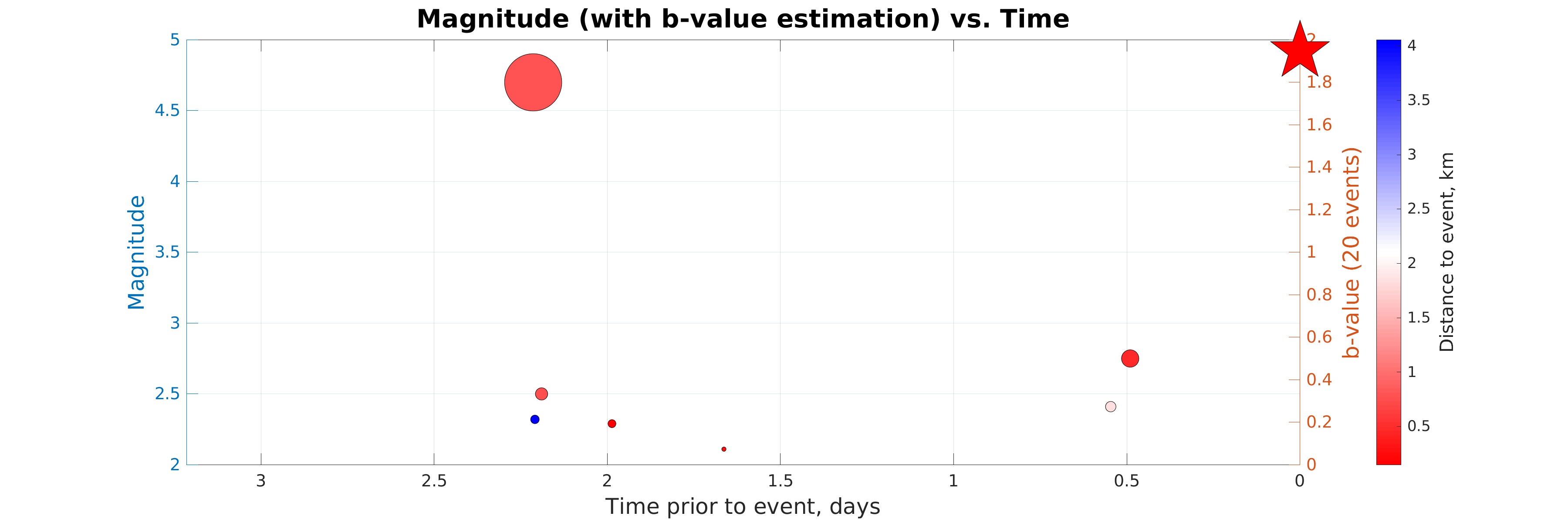 Figure 2. Magnitude (with b-value estimation) vs. Time