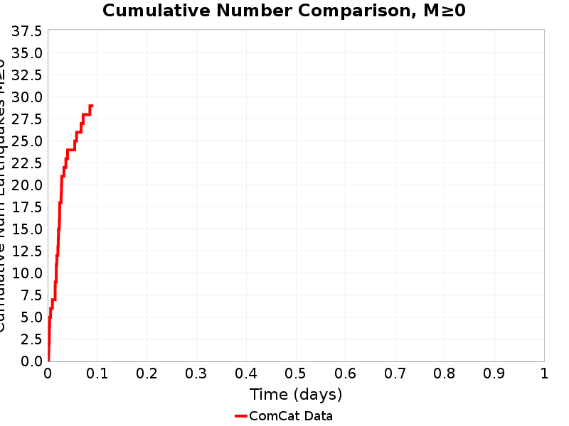 This plot shows the cumulative number of M≥0 aftershocks as a function of time since the mainshock.